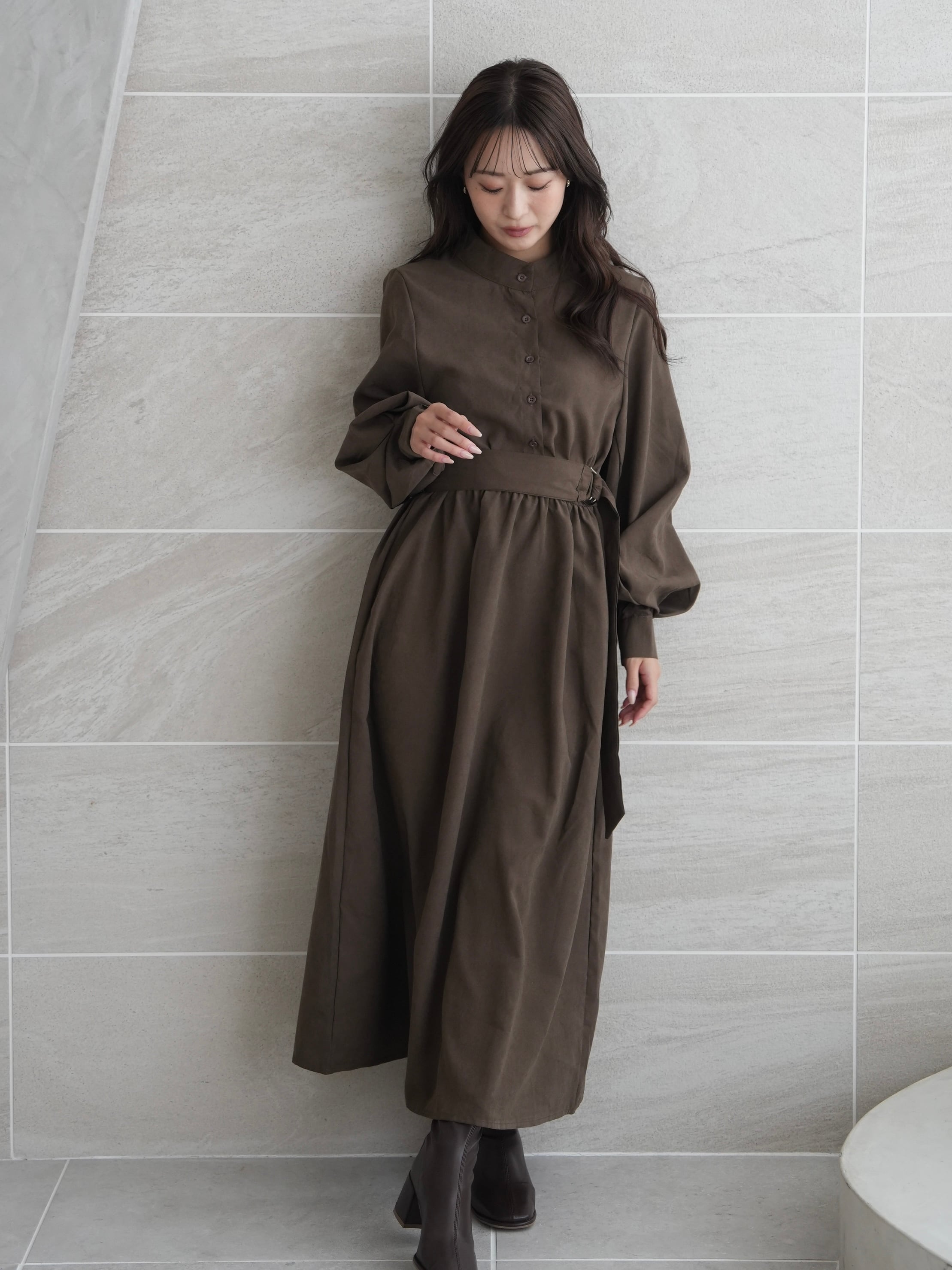 落ち着きのある深みブラウンが、シーズンムードを高めてくれるワンピース。