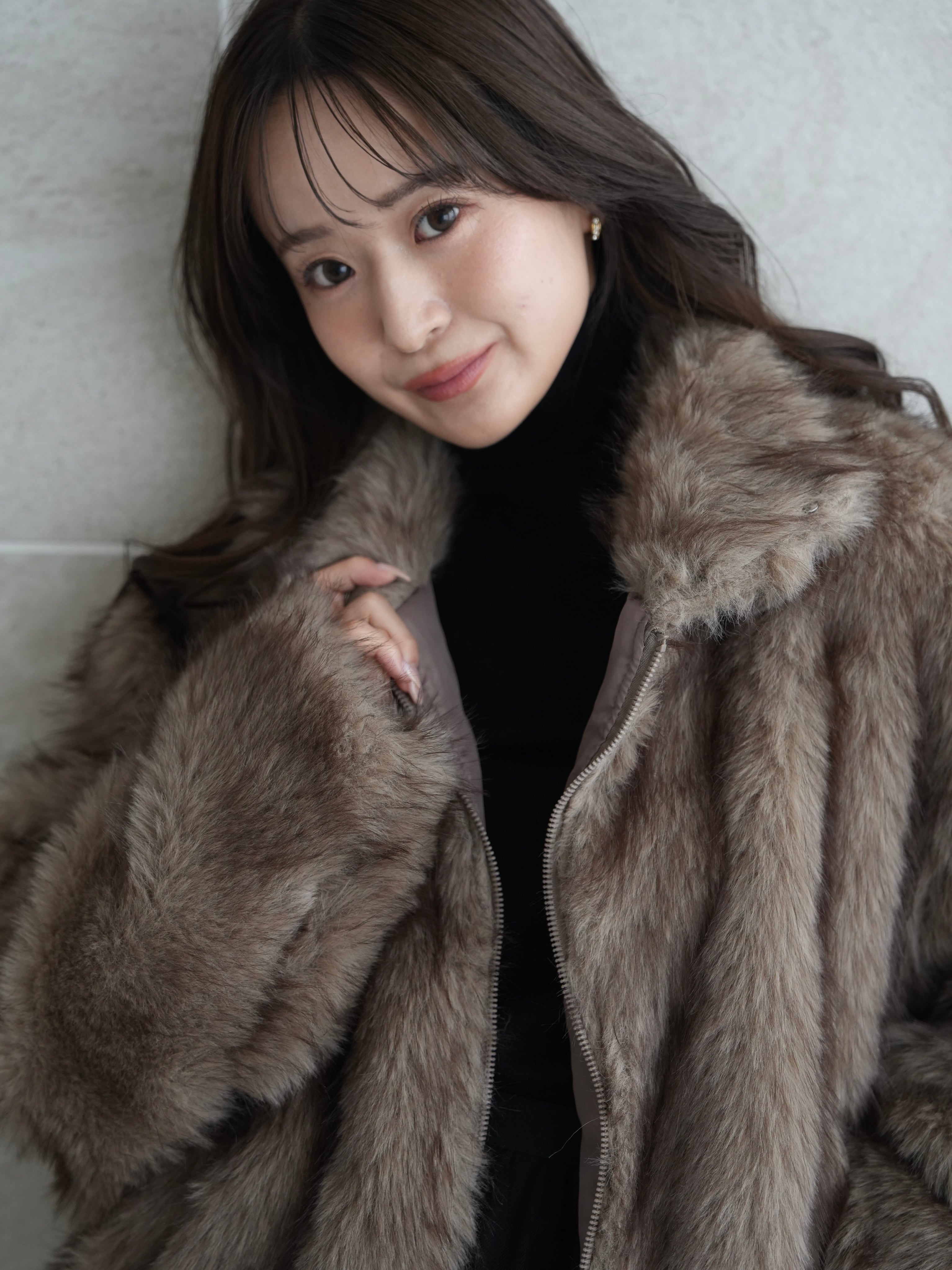 「シックに着こなす、大人の余裕を纏うブラウンファー」