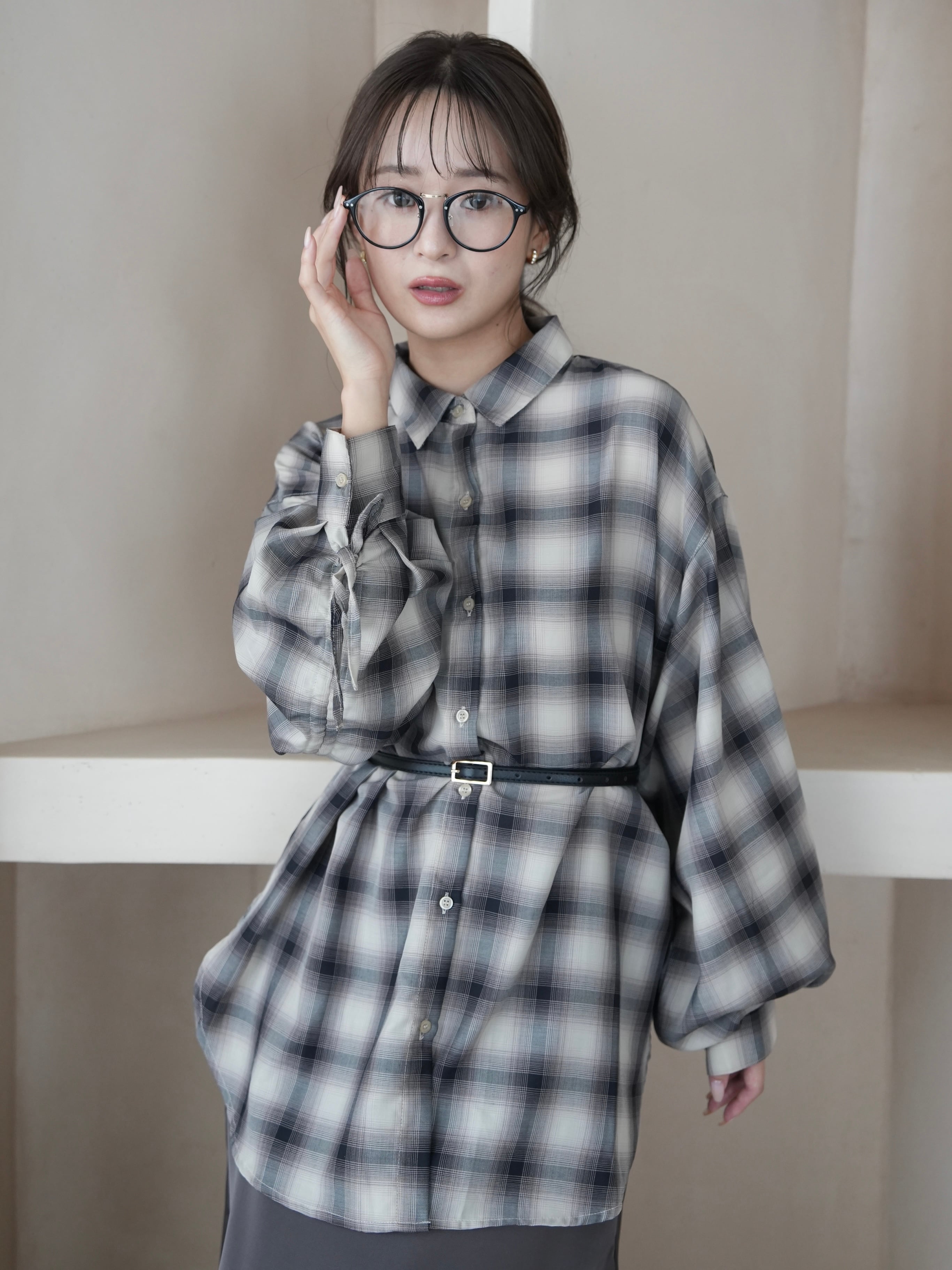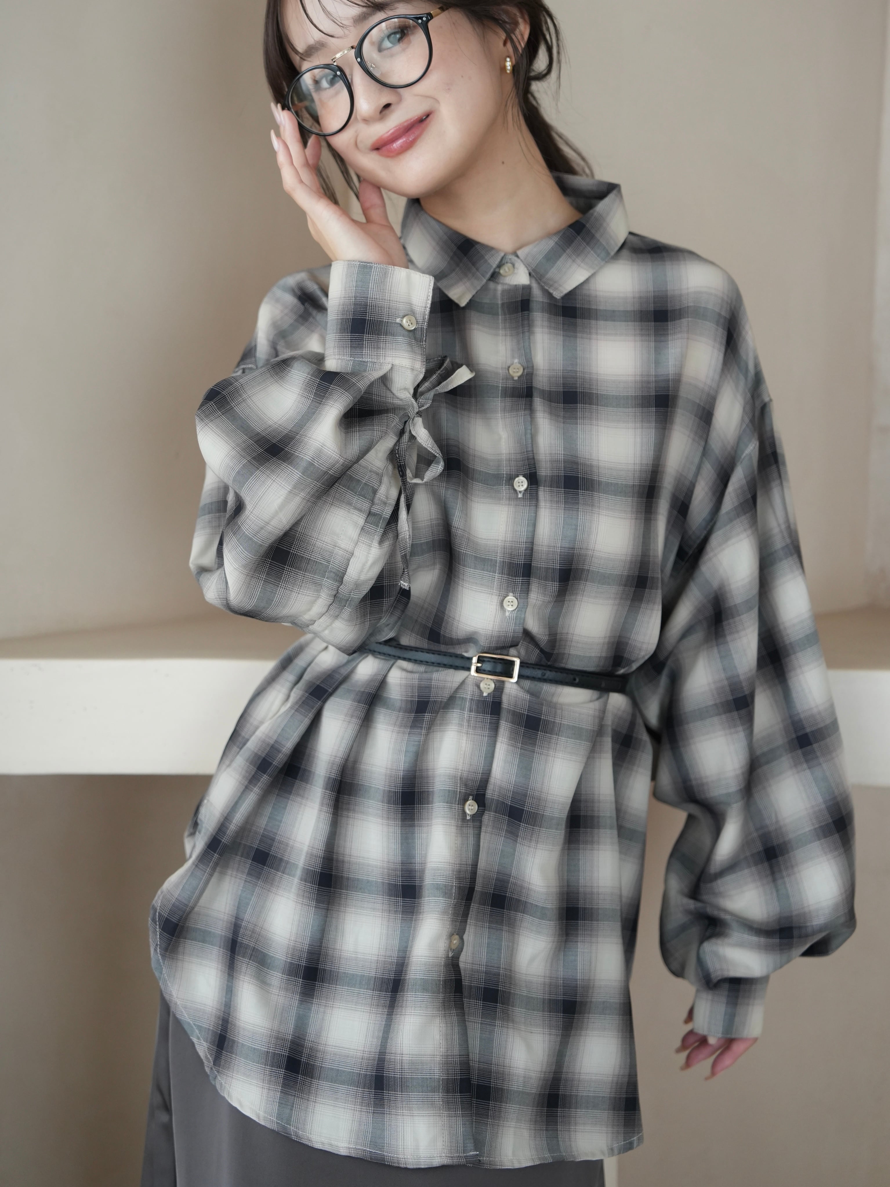 袖のギャザーとリボンで“抜け感”を纏うチェックシャツ。