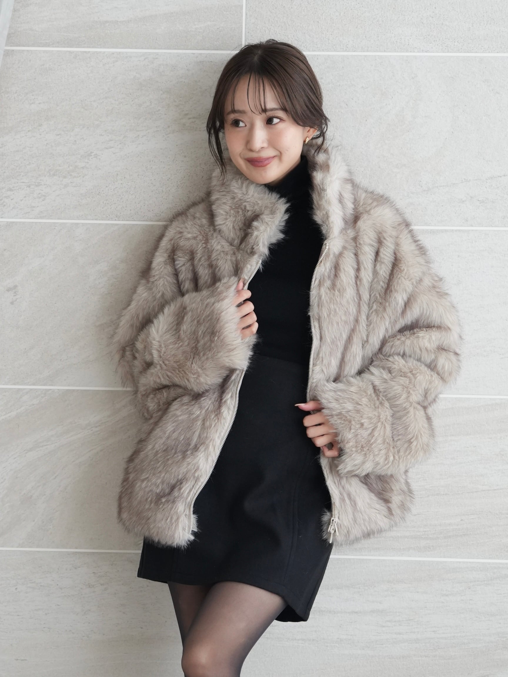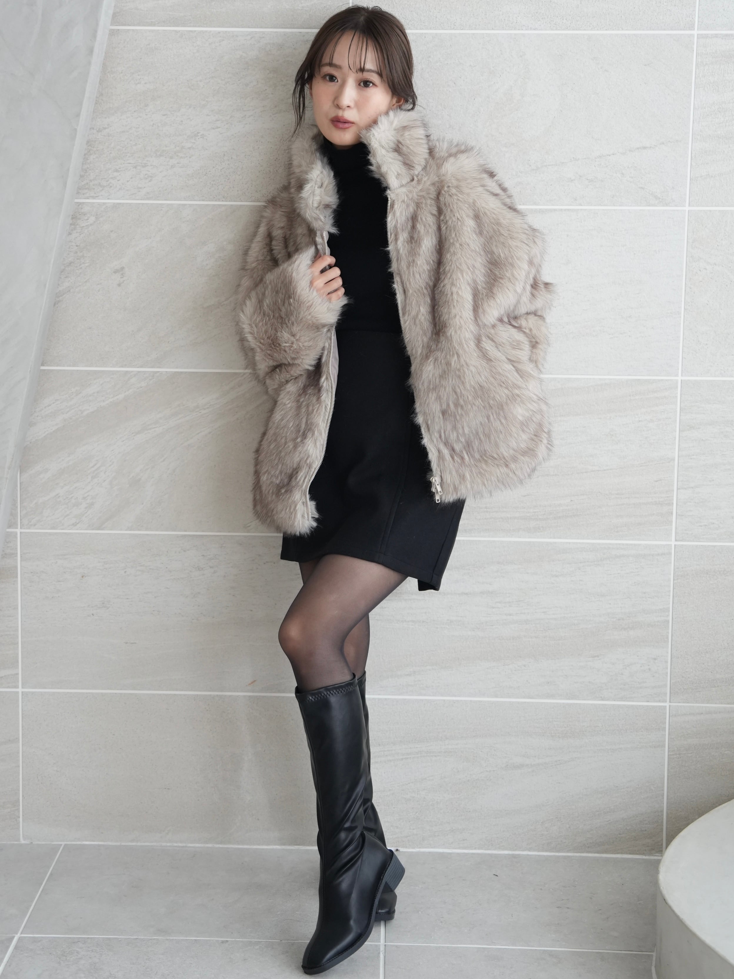 「暖かみのあるスタイルを演出する、フェイクウールコクーンスカート。」