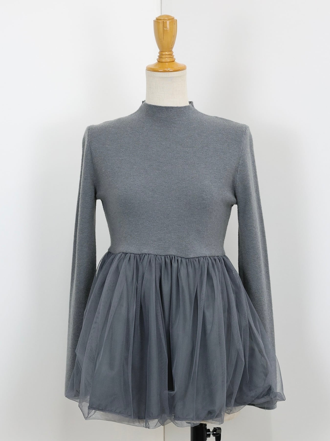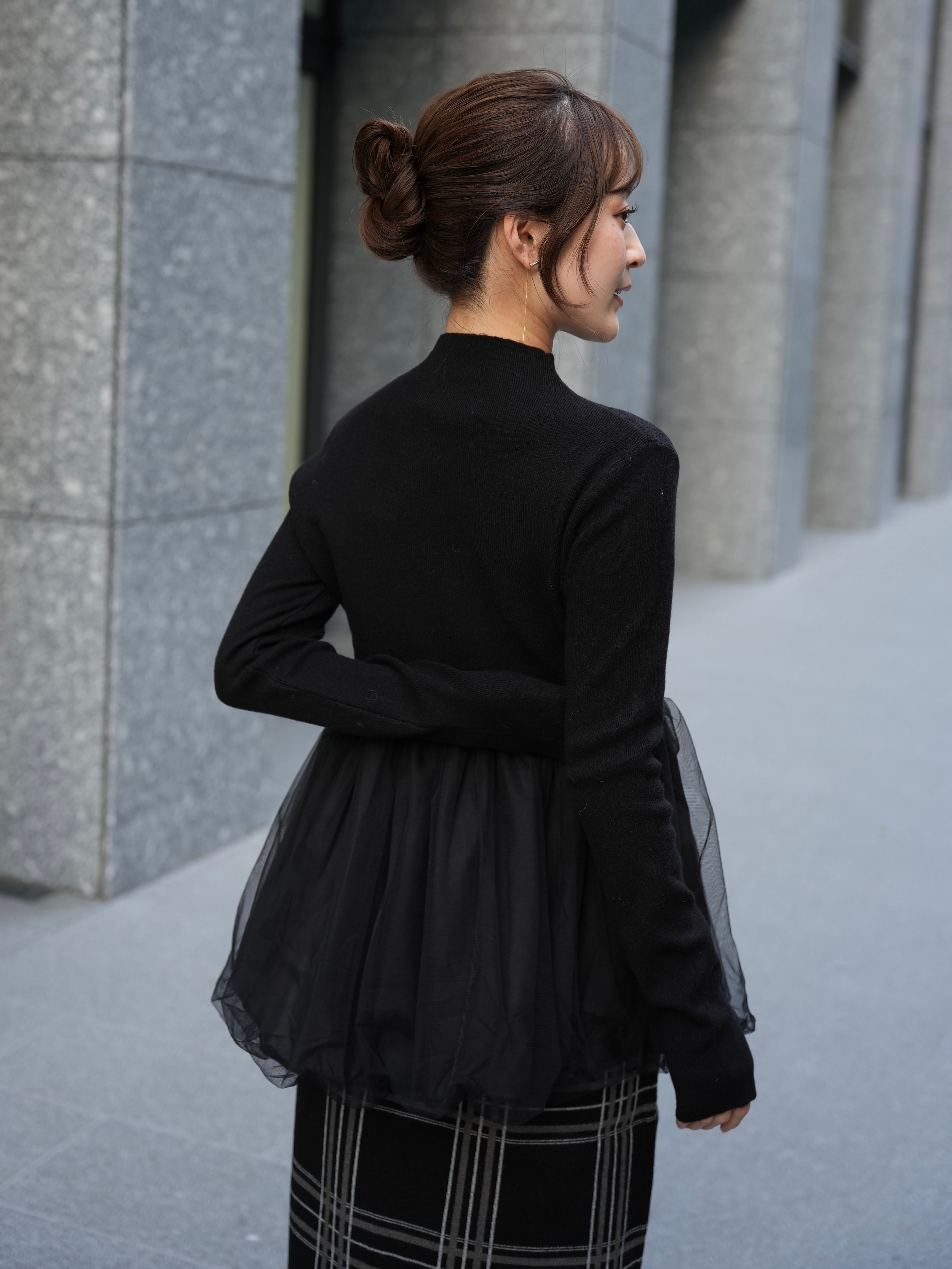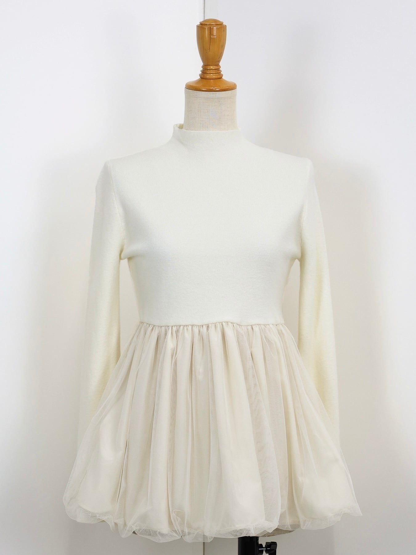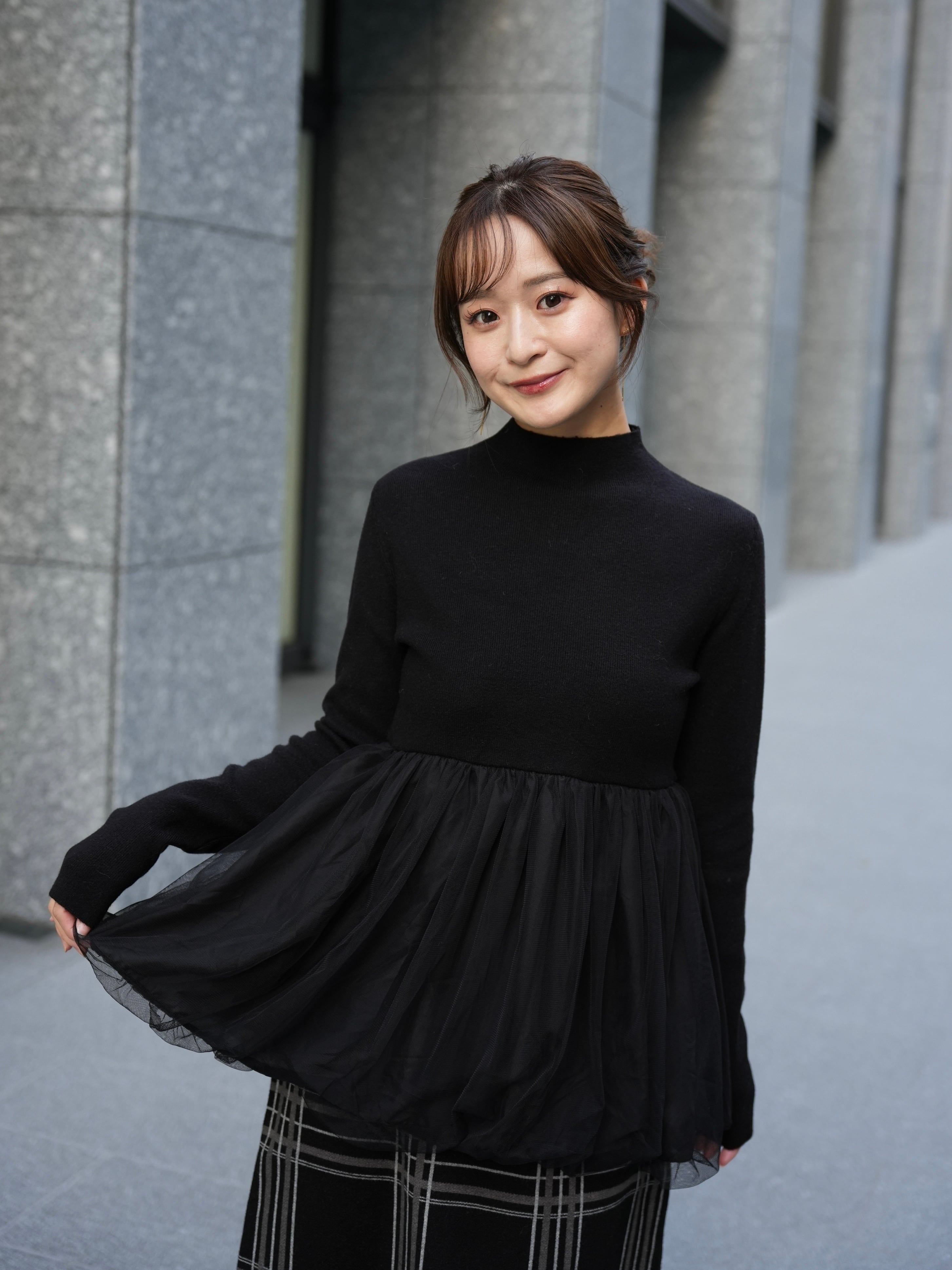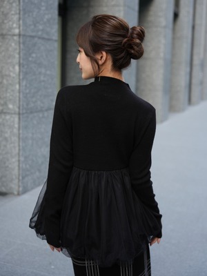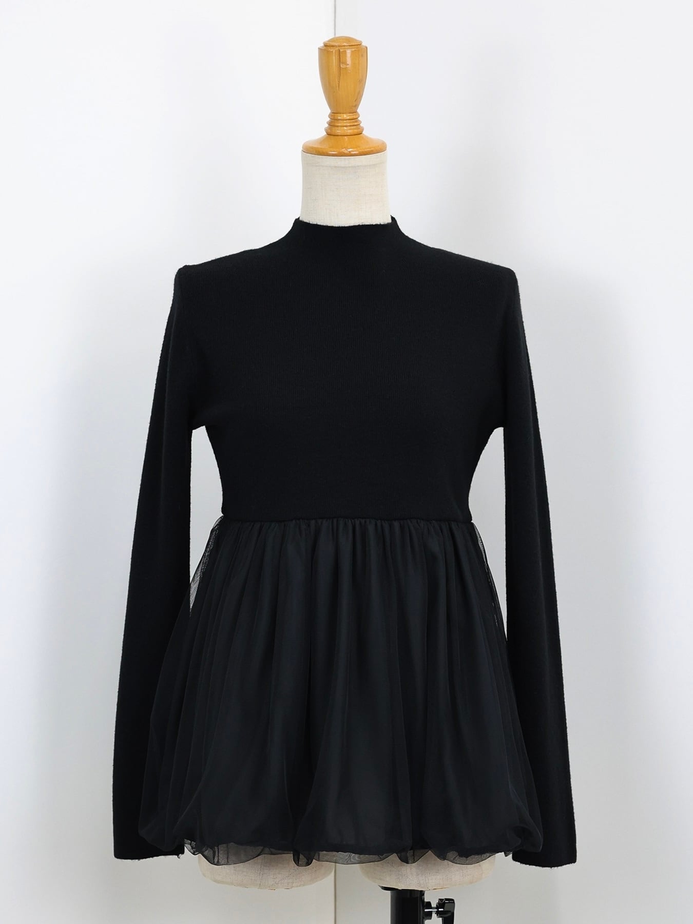 「女性らしさを引き立てる、ハイネックバルーンペプラムニット」