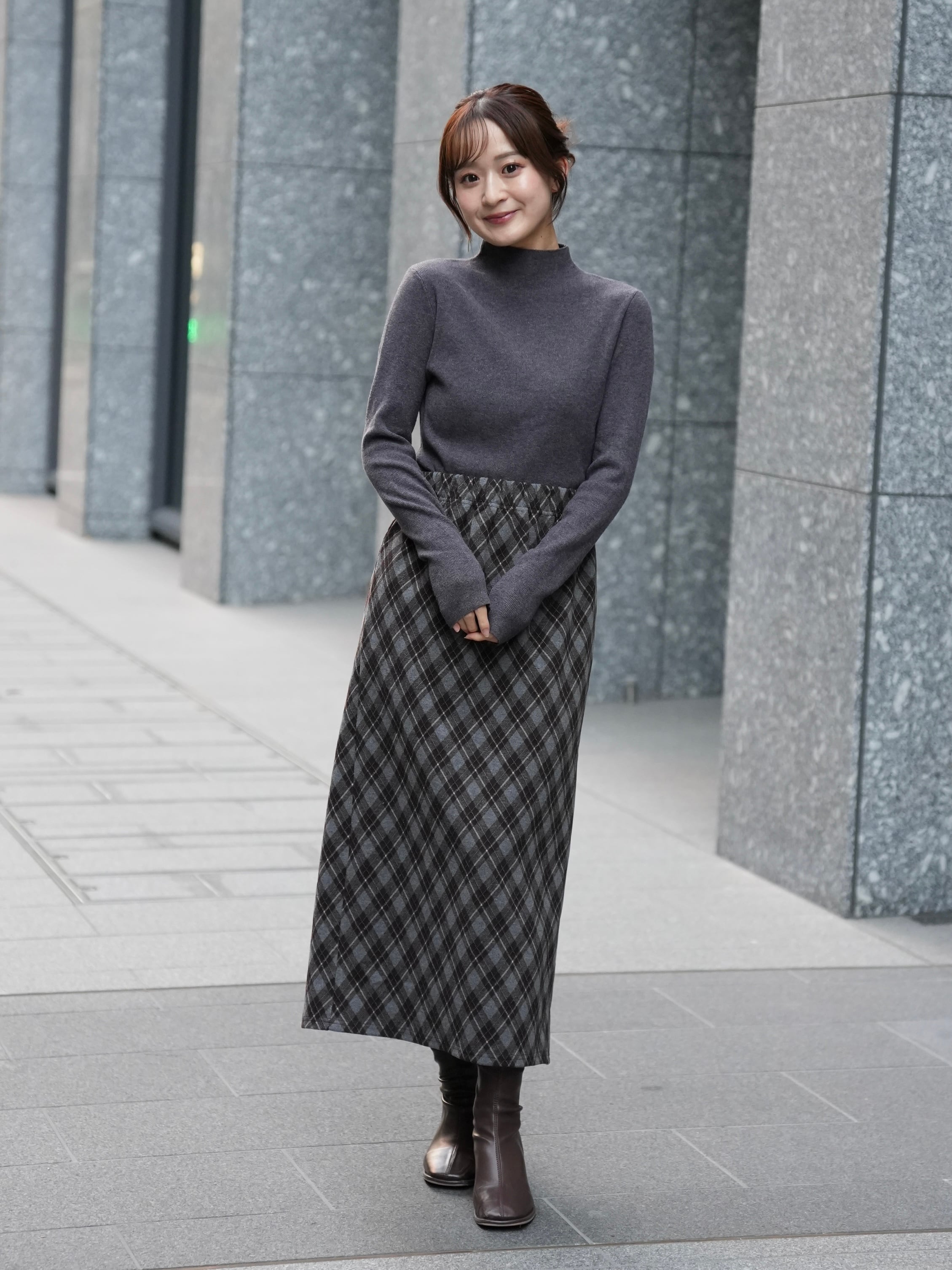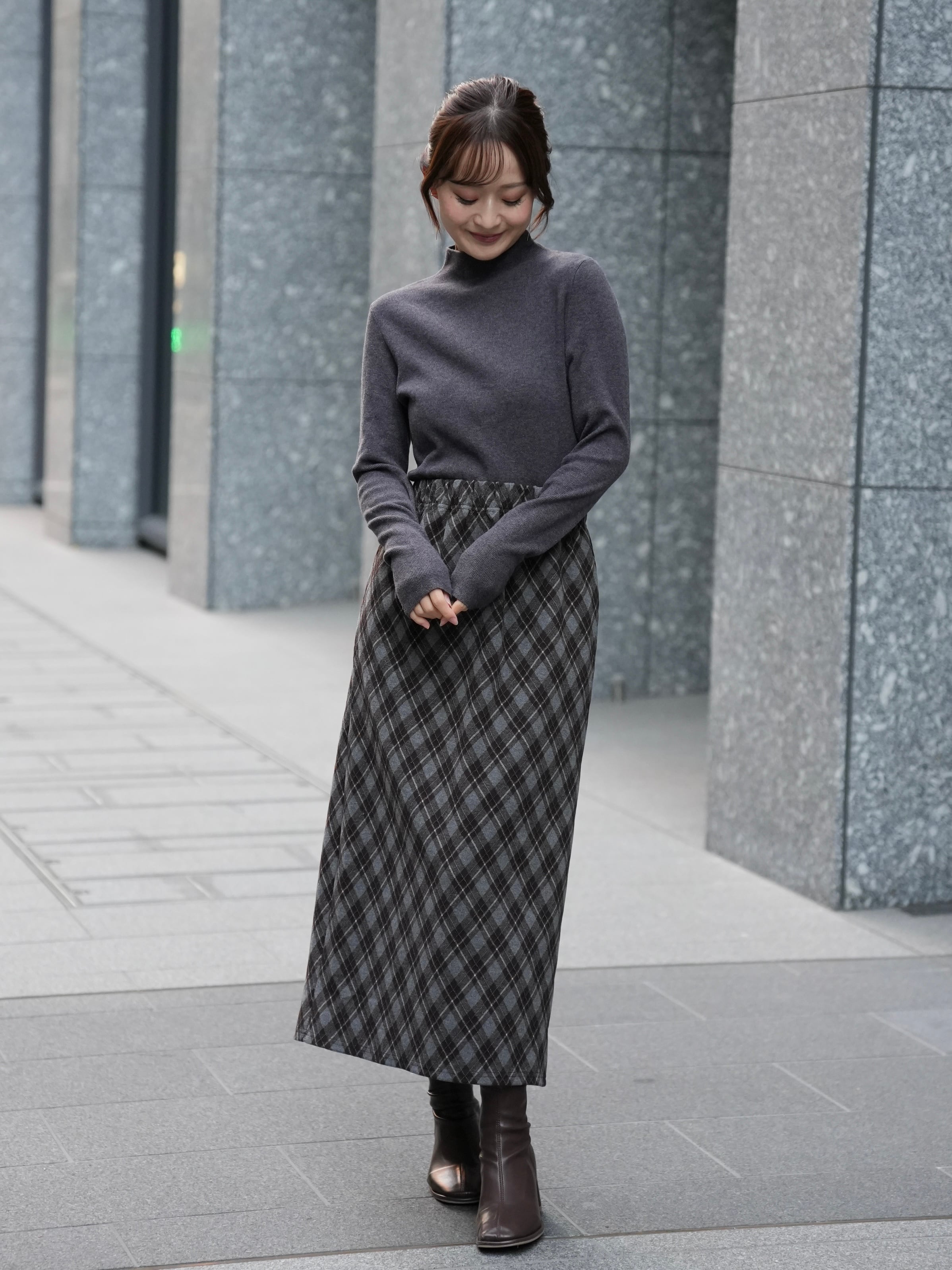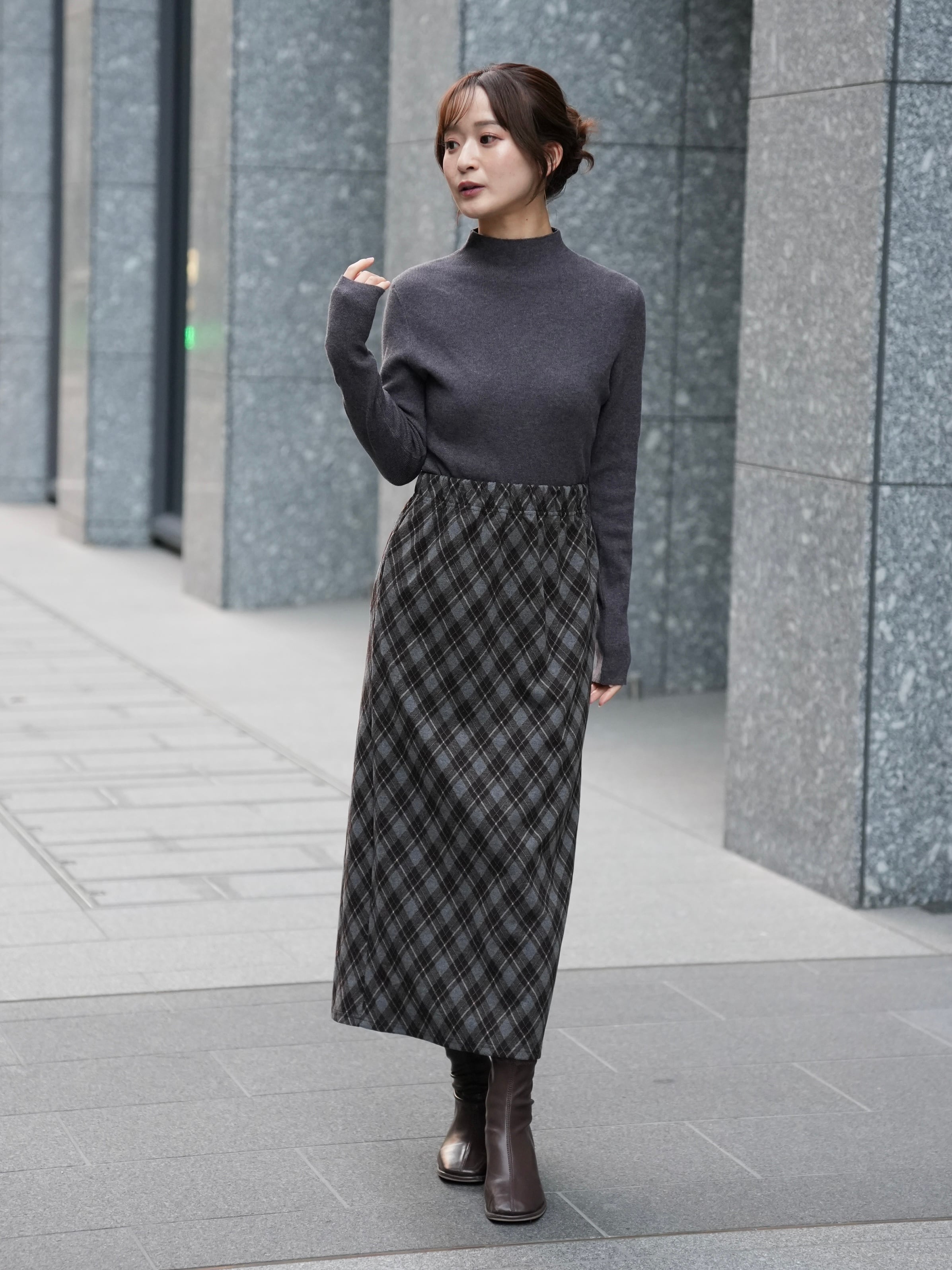 タイトなトップスやオーバーサイズのニットと合わせて、コントラストを楽しむ