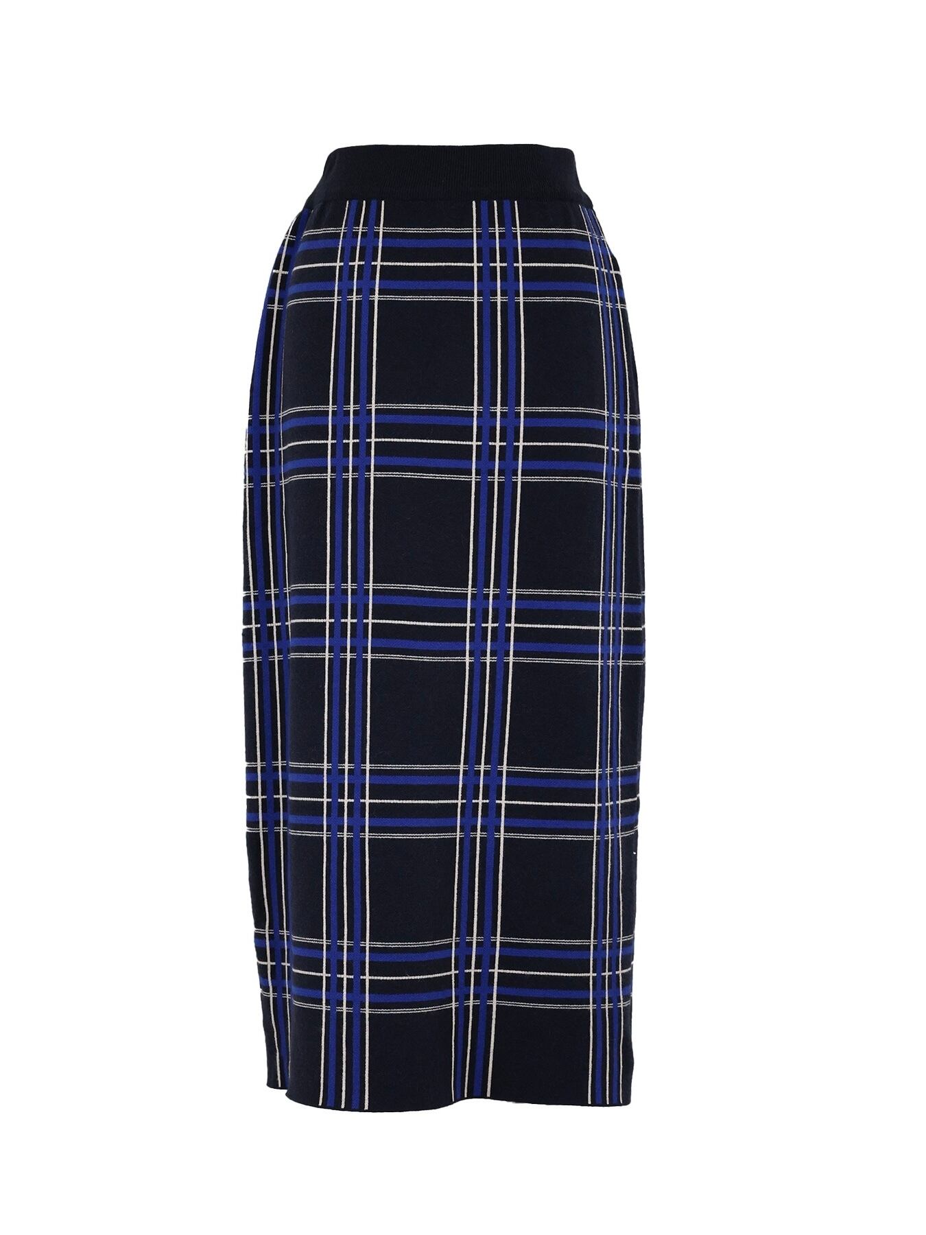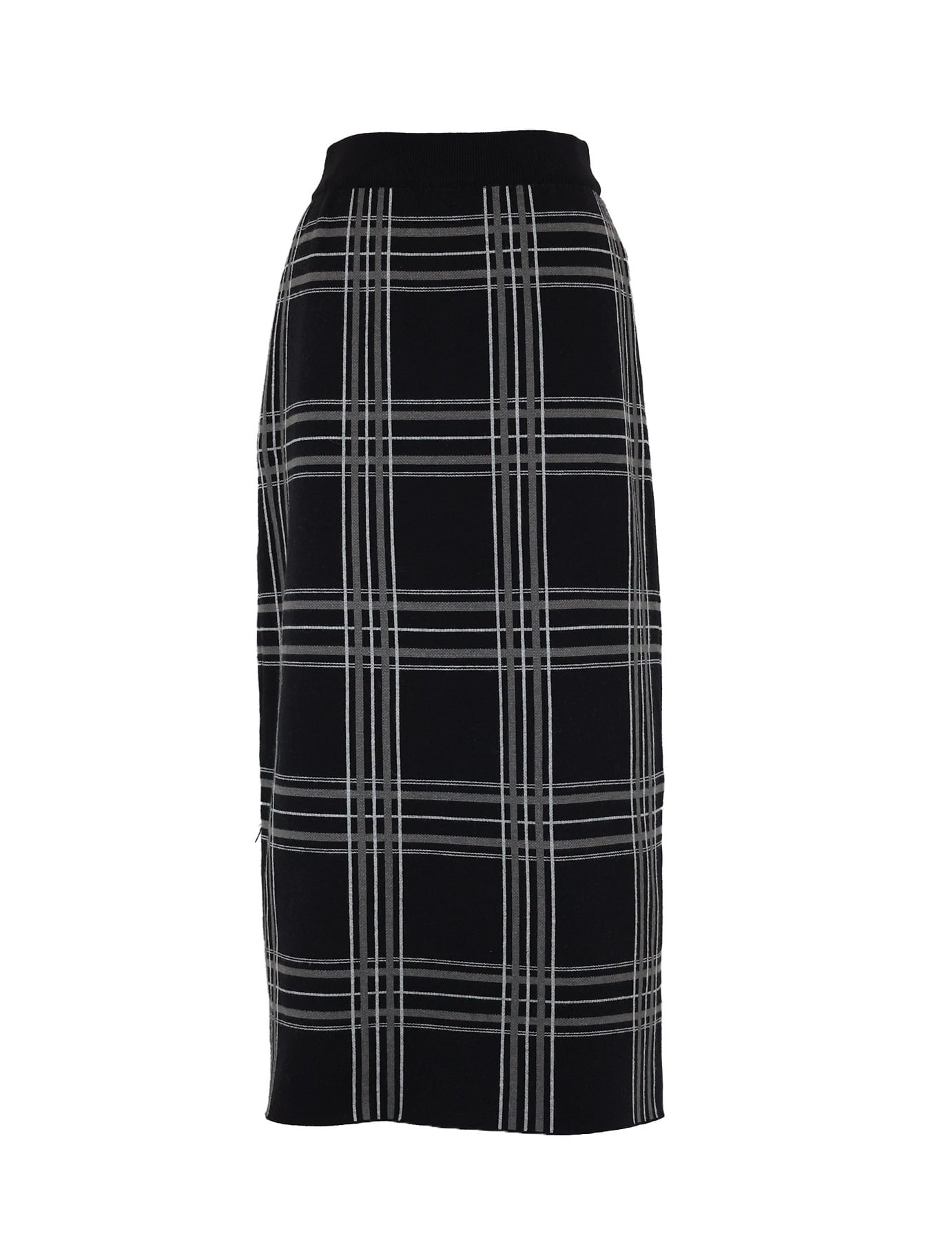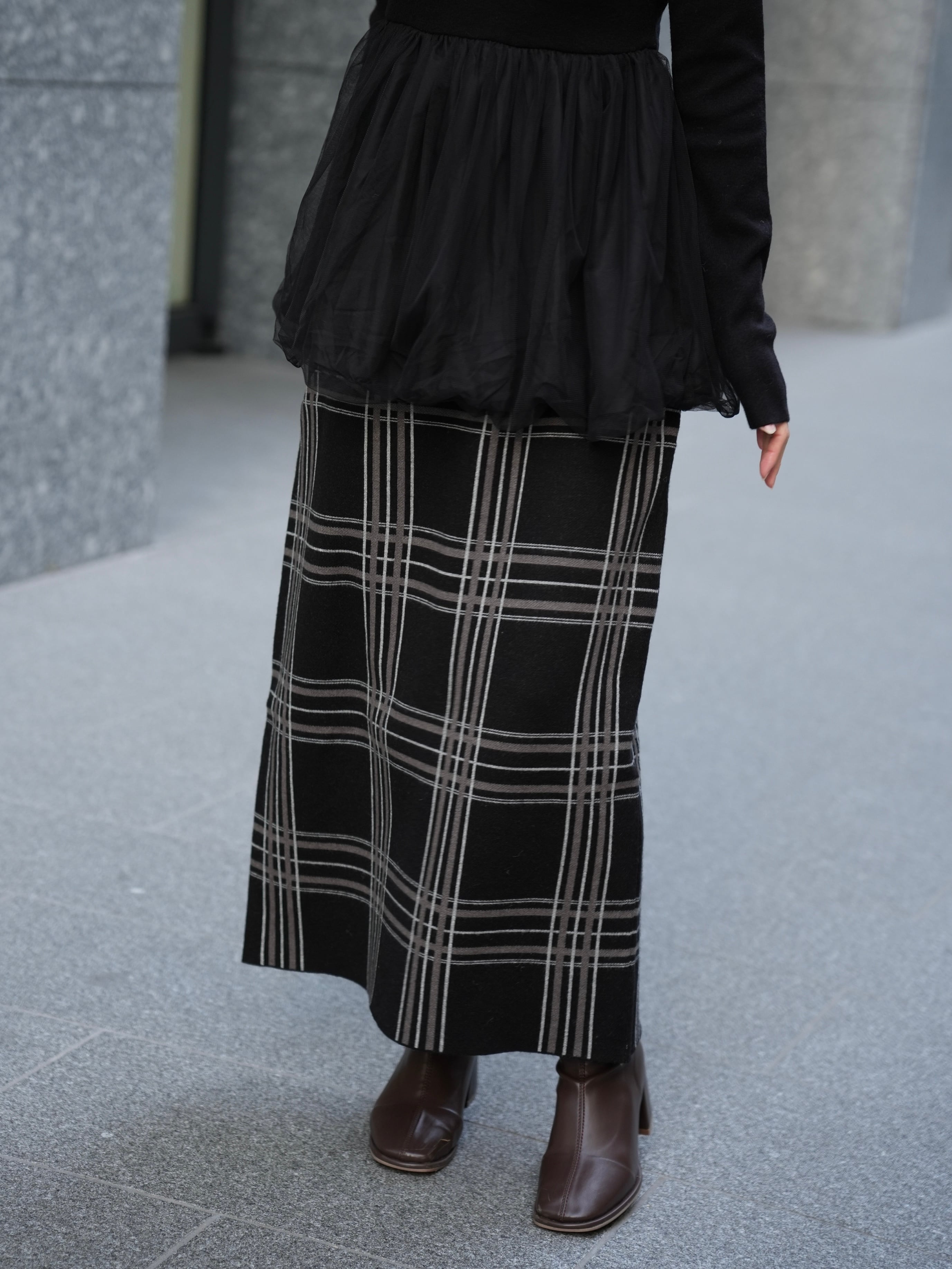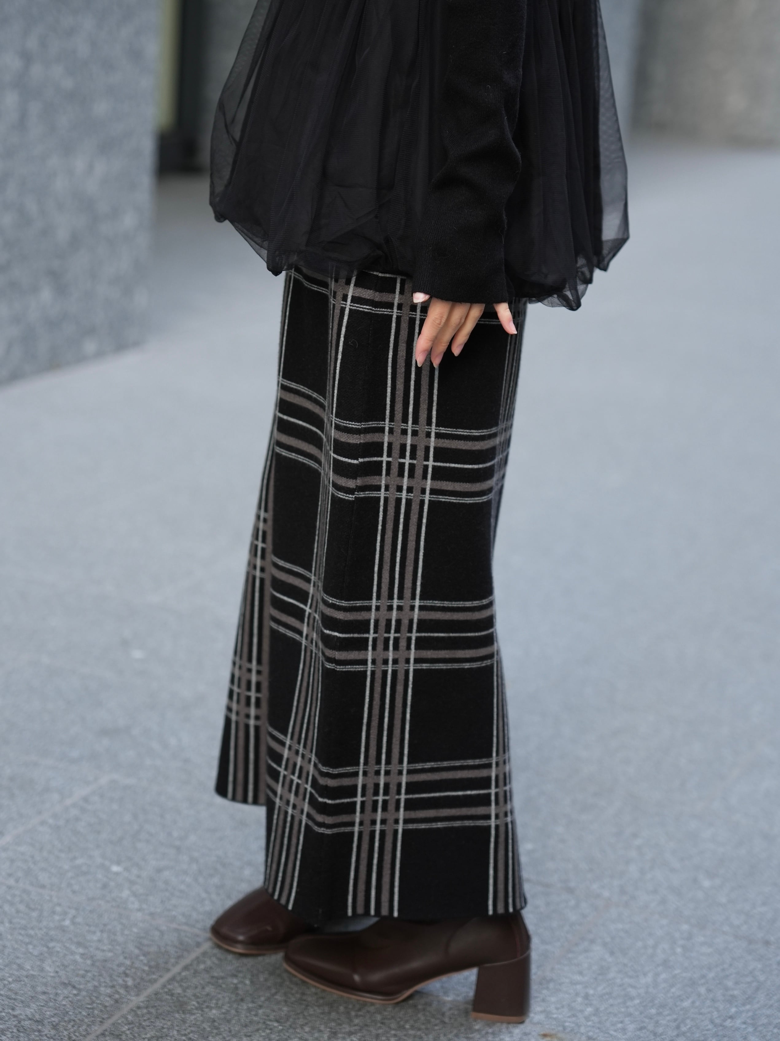 「洗練されたスタイルを実現する、チェックニットタイトスカート」