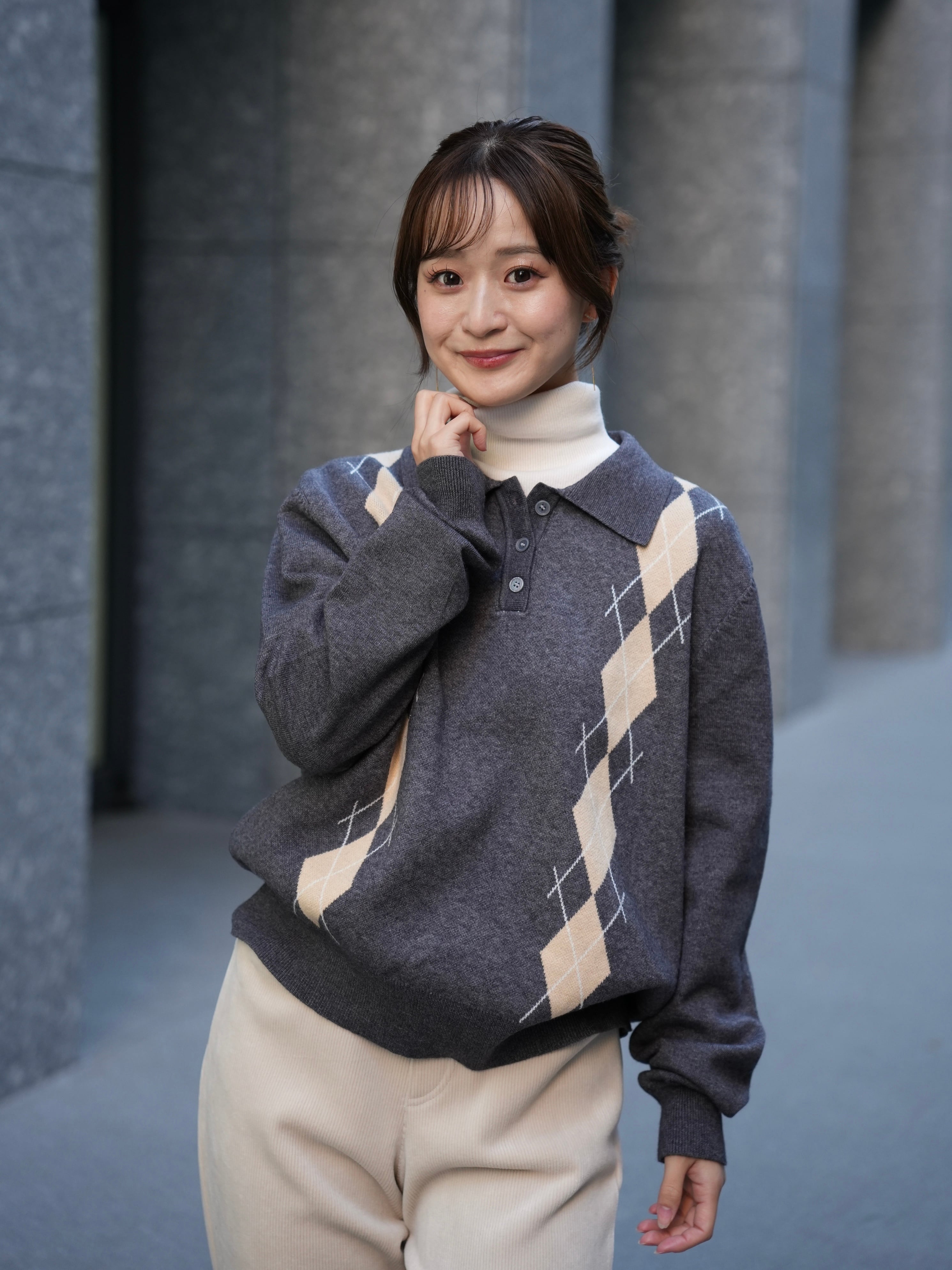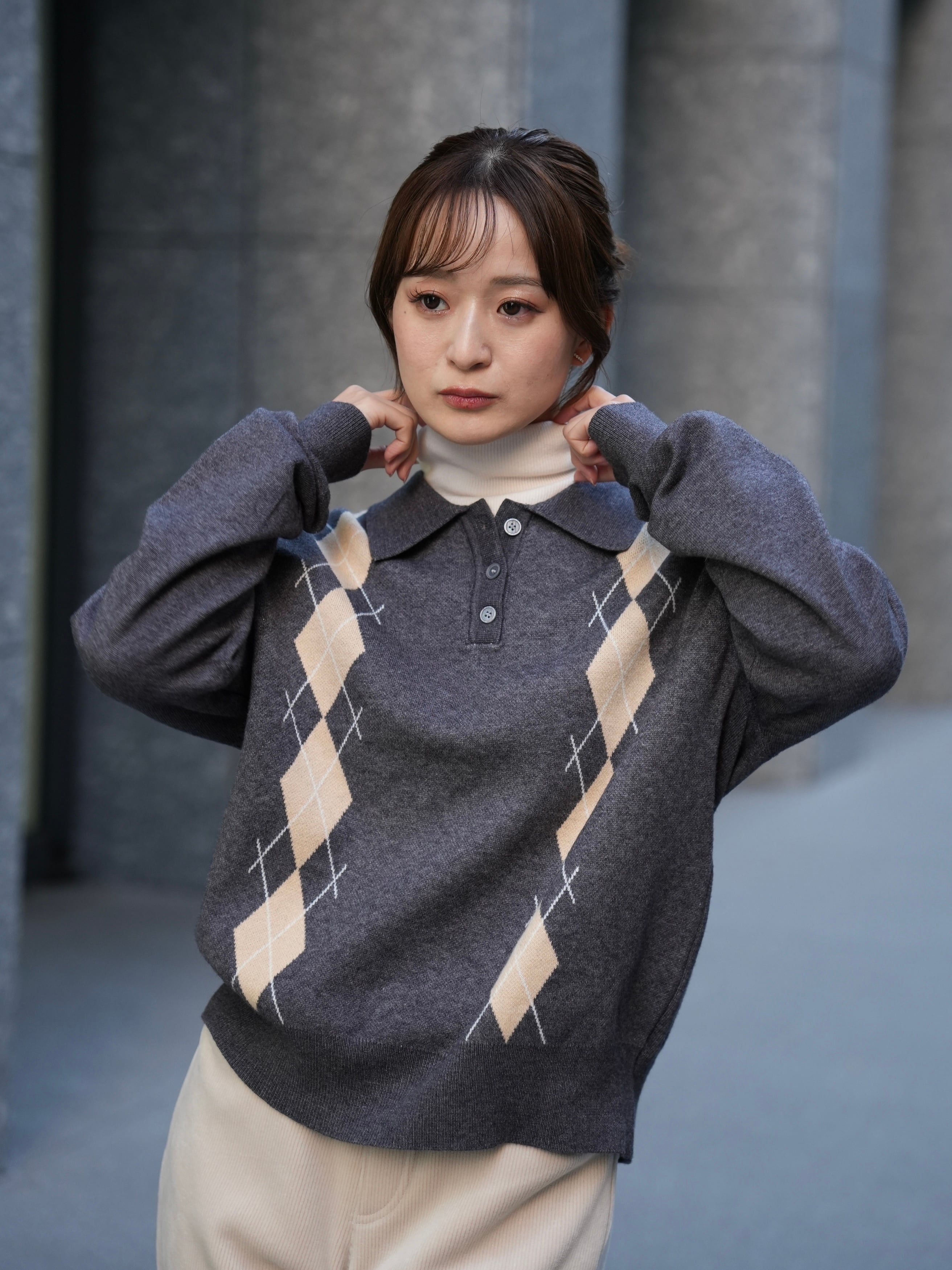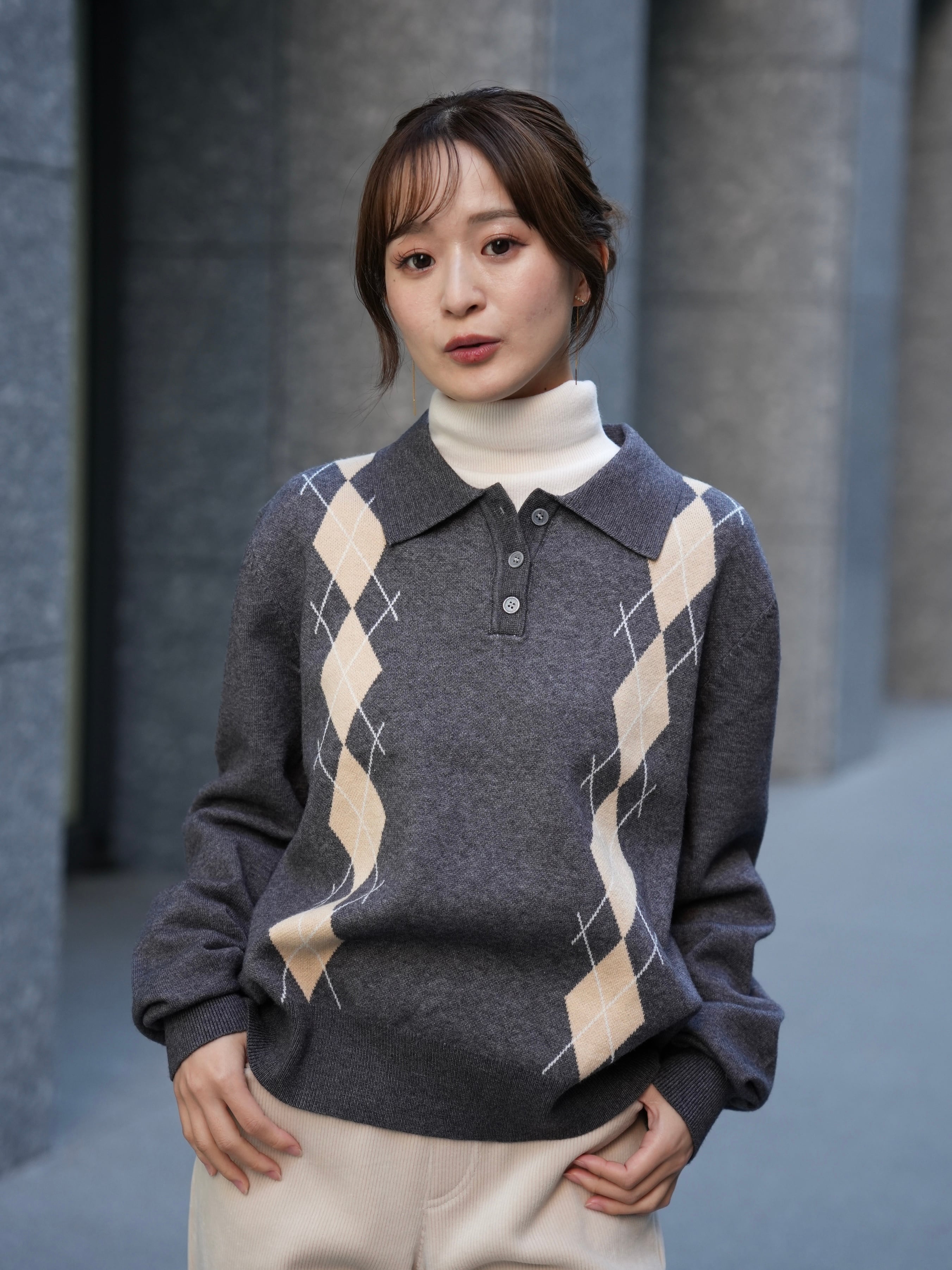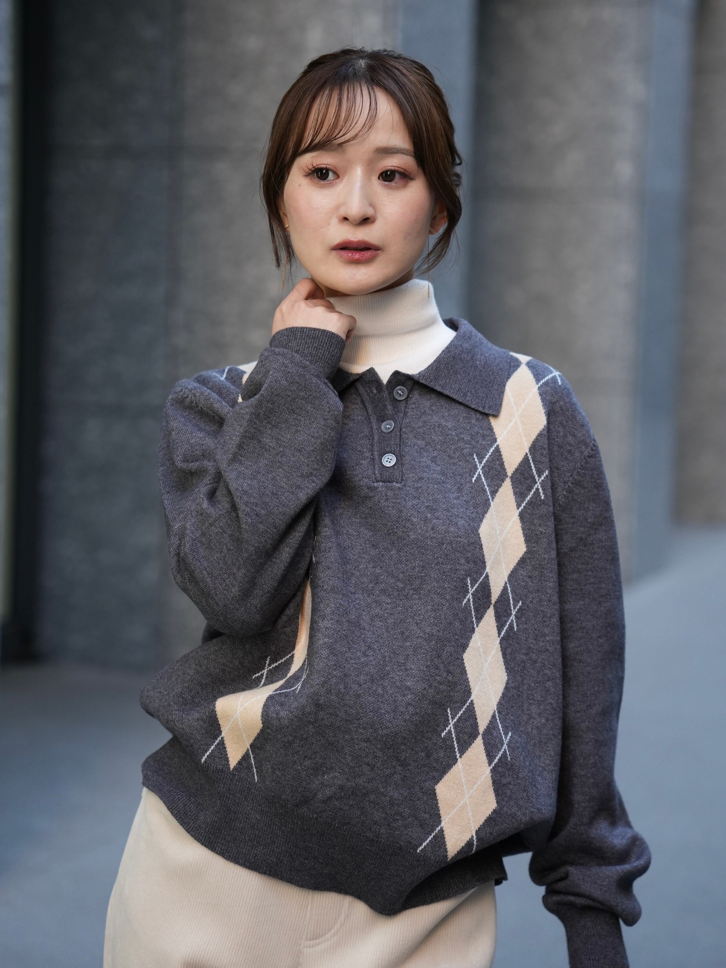 「クラシカルでスタイリッシュな、アーガイルポロニット」