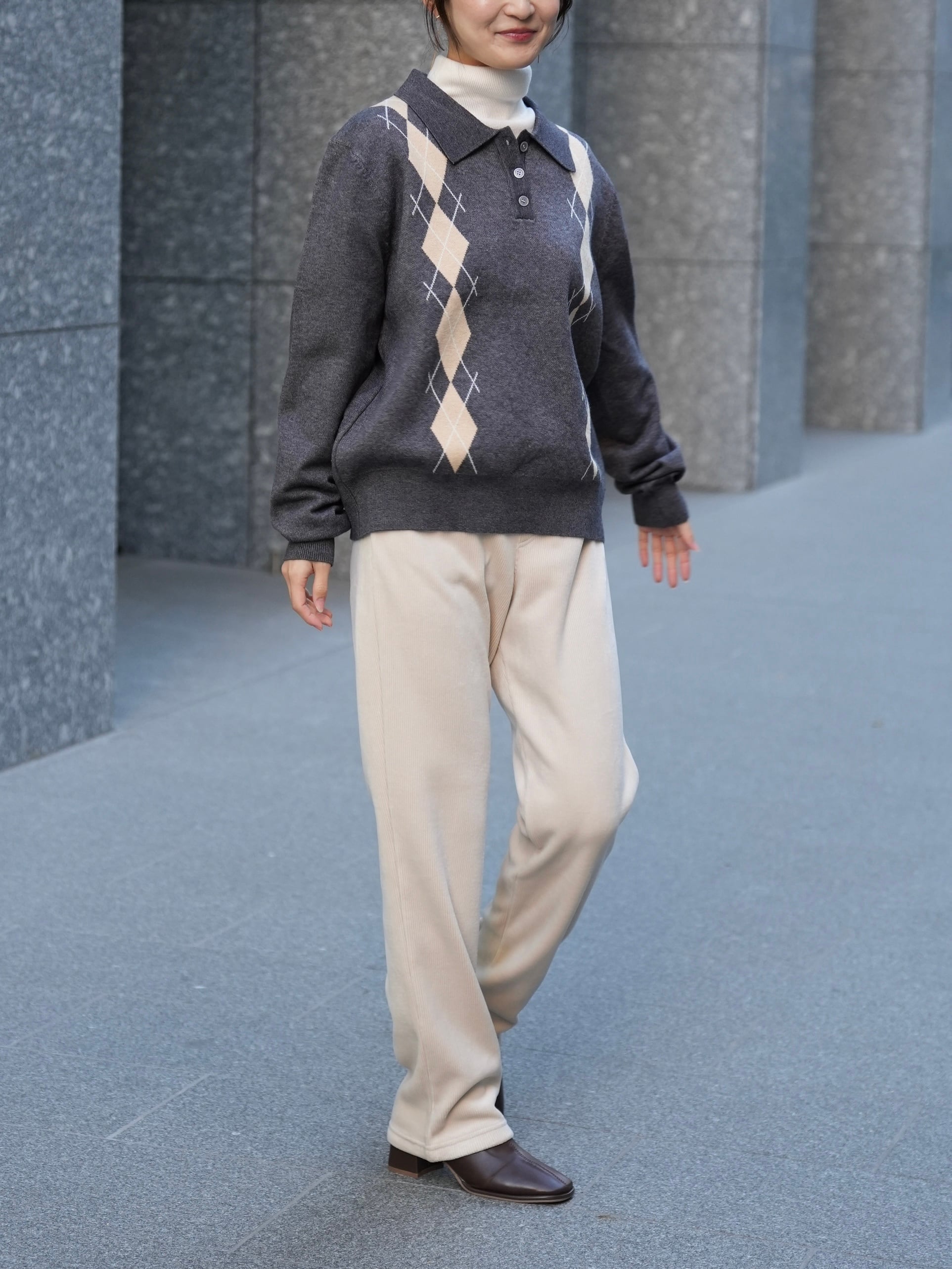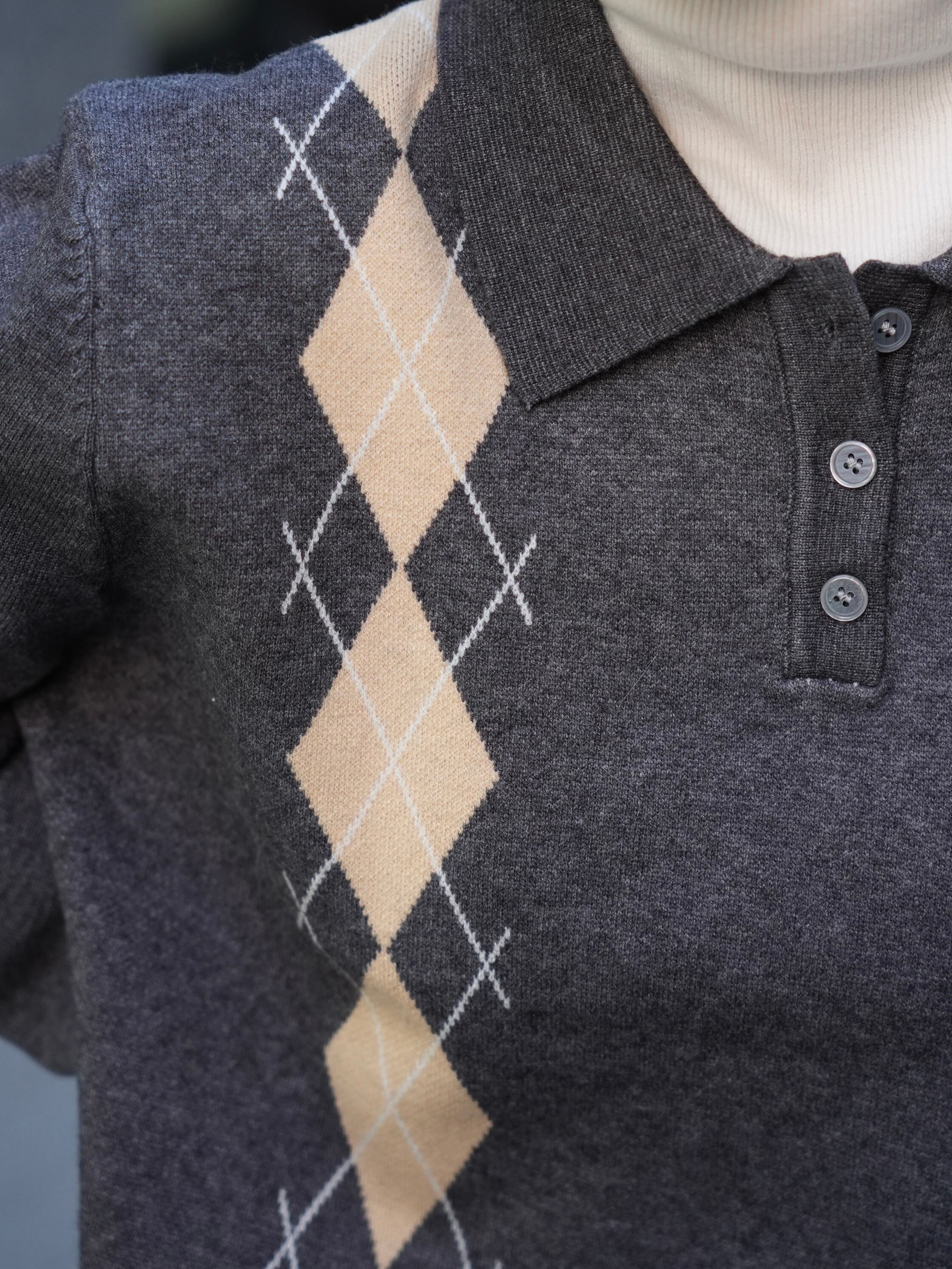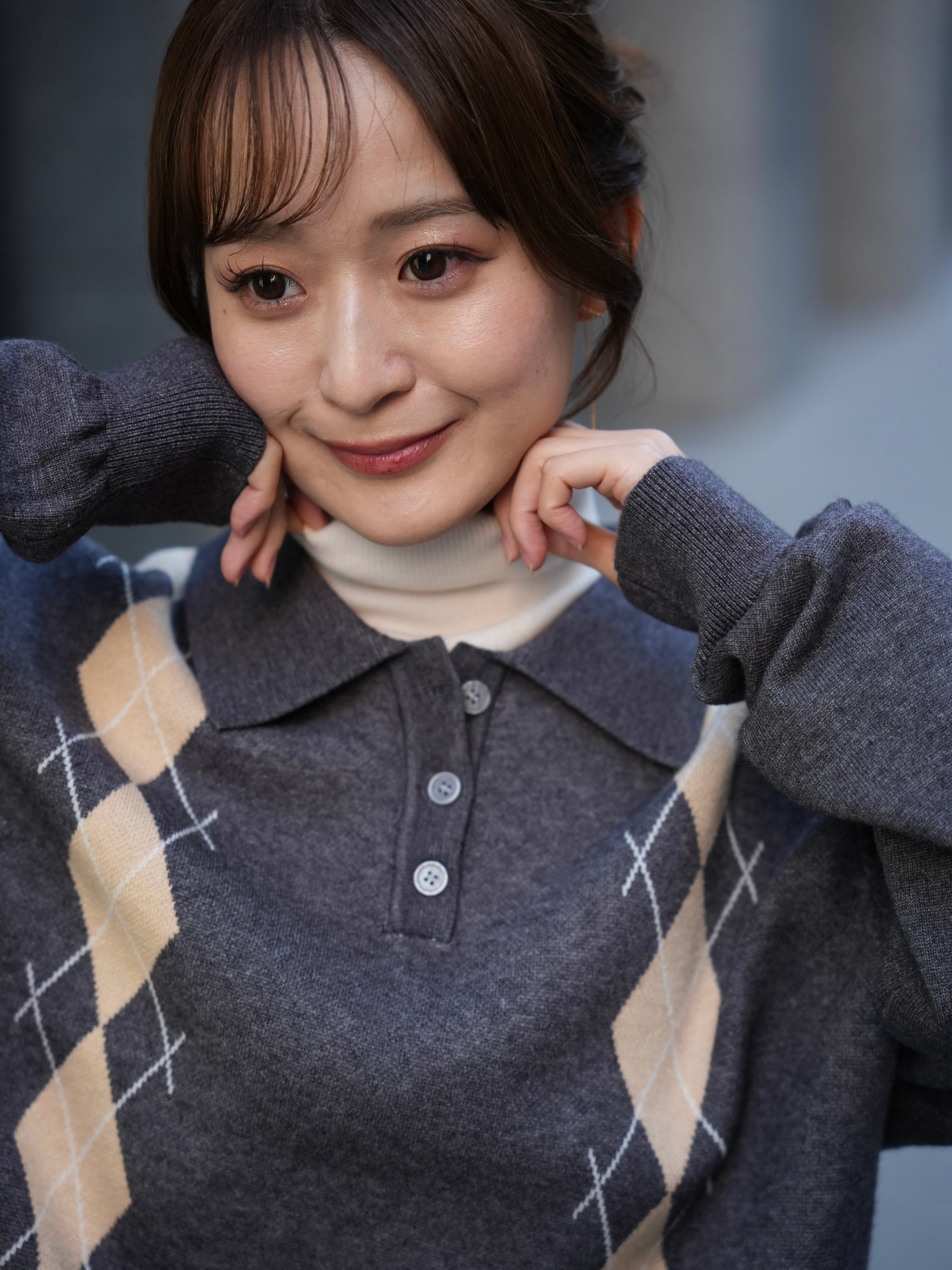 「クラシカルでスタイリッシュな、アーガイルポロニット」