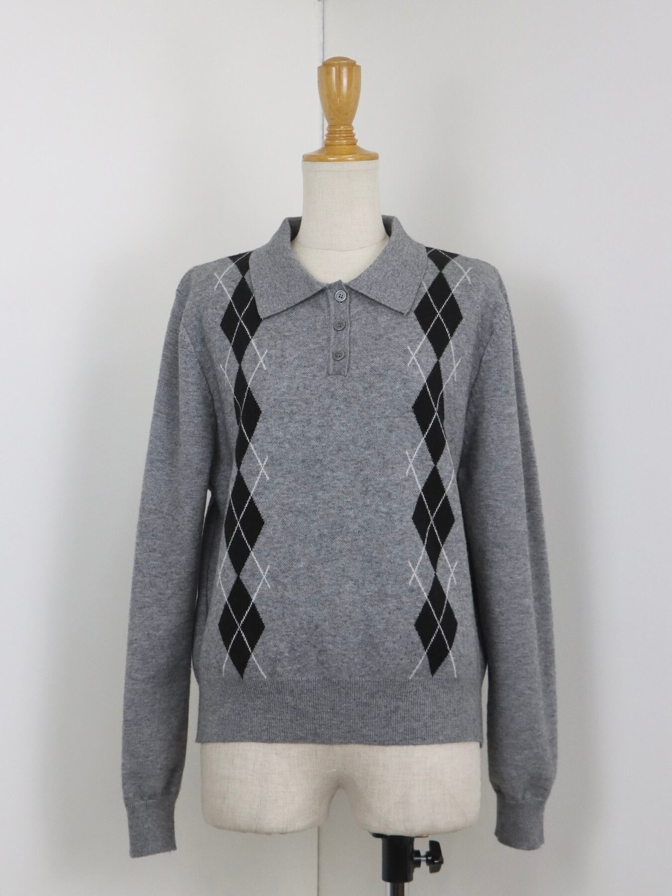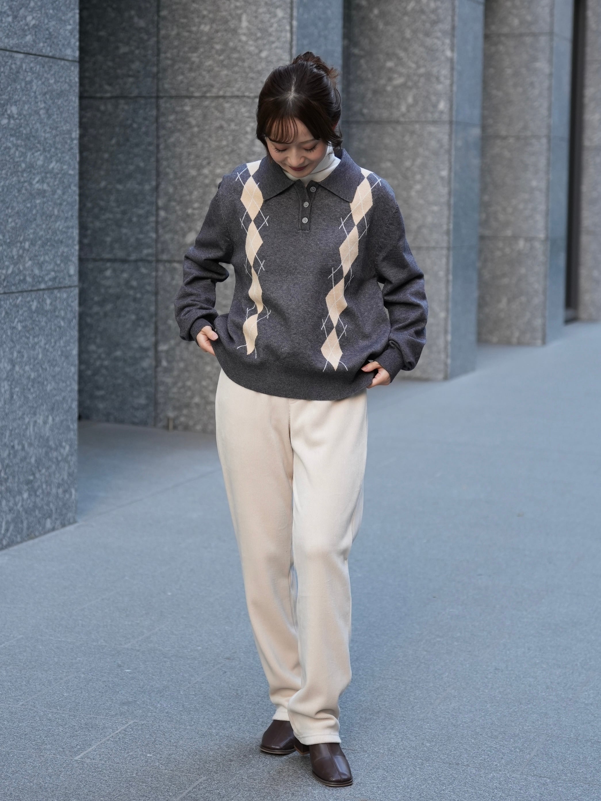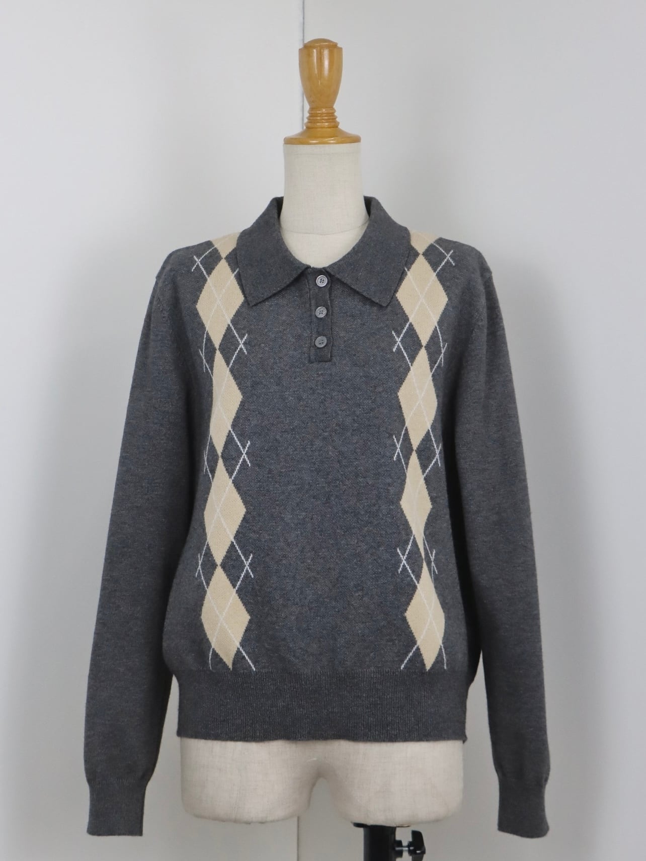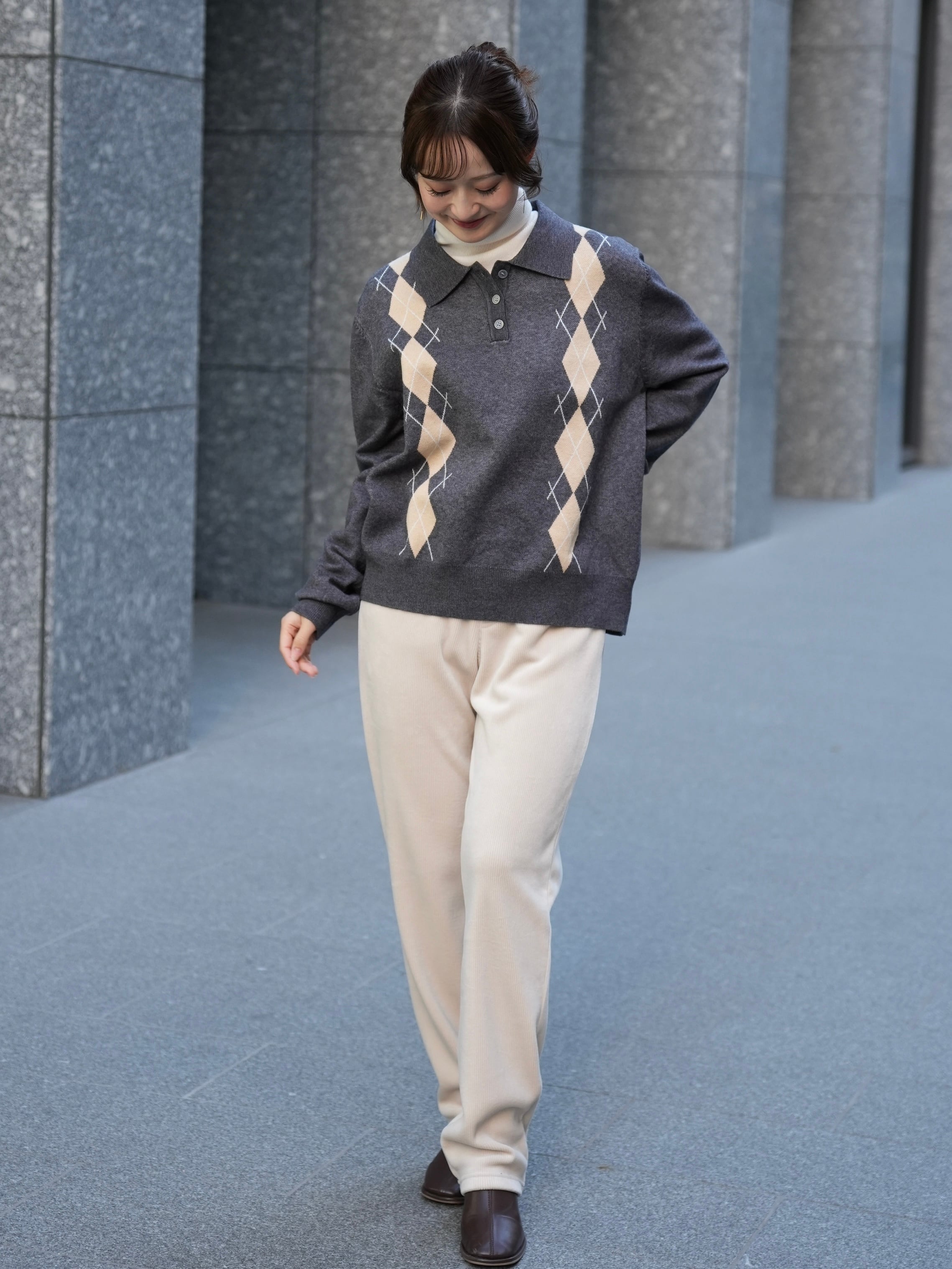 「クラシカルでスタイリッシュな、アーガイルポロニット」